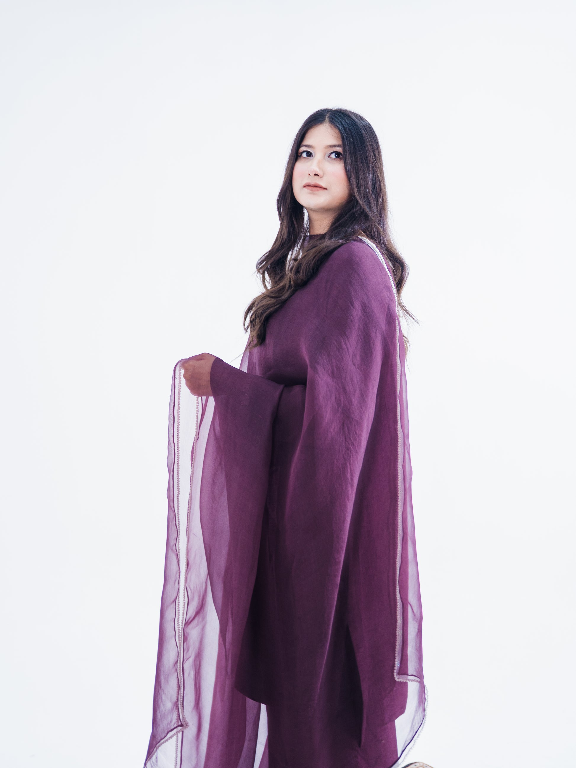 Smoothly Dyed Same Color Matching Katan organza Dupatta.